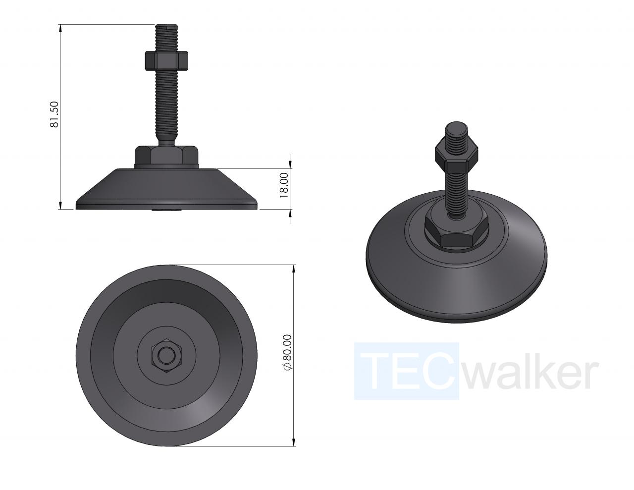 Stellfuß 8 D80 ZN M16x100 mit Anschraubbohrungen