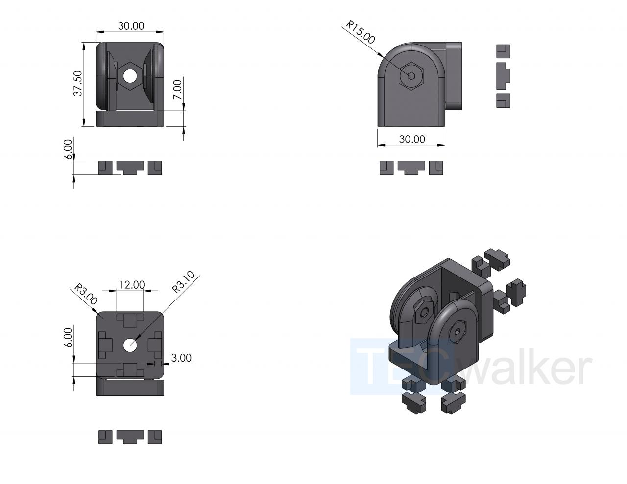 Gelenk 6 30x30 mit Klemmhebel