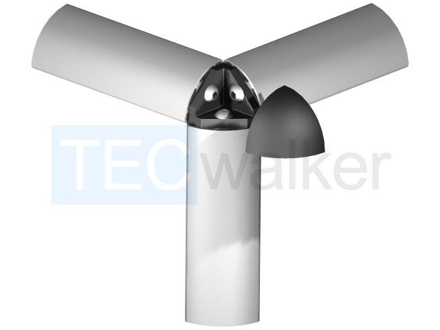Eckverbindungssätze dienen zum stabilen Aufbau einer 3-seitigen 90°-Verbindung und eigenen sich besonders bei optisch ansprechenden Werkstücken wie beispielsweise Vitrinen. In die Kernbohrung der drei zu verbindenden Profilabschnitte muss jeweils ein Gewinde M5 eingebracht werden. Der Eckverbinder selbst besteht aus Zinkdruckguss und verfügt über Nasen, die als Verdrehsicherung dienen. Die Kappe besteht aus Kunststoff PA schwarz. Im Satz sind 3 Verbindungsschrauben enthalten, die in das gebildete Gewinde innerhalb der Kernbohrung eingeschraubt werden. Auf Wunsch können wir die Abdeckkappen in unterschiedlichen Farben herstellen