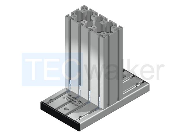 Bodenplatte 8 280x160x28 mit AbdeckkappenDatenArtikelnummer: Baureihe: Nut 8 Material: Aluminium, PA-GF schwarz Maße: 288 x 160 x 28 Einheit: Stk. Gewicht: 0,228 Kg File Download Hinweis Die Bodenplatte 8 280 dient zur Befestigung von vertikalen Profilabschnitten und verteilt hohe Lasten auf eine größere Fläche. Vorder- und Rückseite habe unterschiedliche Anzahlen an Nuten, wodurch mehrere unterschiedlich große Profilquerschnitte angeschraubt werden können. Über die zusätzliche Bohrung lässt sich die Bodenbefestigungsplatte mit Dübeln befestigen Preise Sie sind (bitte wählen)