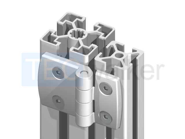 Scharnier Alu Typ B N8/10 30x45DatenArtikelnummer: Baureihe: Nut 8 Material: ALU Maße: 73,45 x 49,8 x 11 Einheit: Stk. Gewicht: 0,0705 Kg File Download Hinweis Das Scharnier Alu Nut 8/10 im Raster Typ B 30 und 45 dient zur Befestigung von Türen und Klappen an jeweiligen Profilrahmen. An der Unterseite sind Nasen angebracht, die in die Profilnuten greifen und dadurch als Verdrehsicherung dienen. Zur Befestigung sind 4 Schrauben S208SKS616 sowie je 2 Hammermuttern S208HM6 für Profil Typ B im Raster 30 sowie S210HM6 für Profil 10 im Raster 45 erforderlich Preise Sie sind (bitte wählen)
