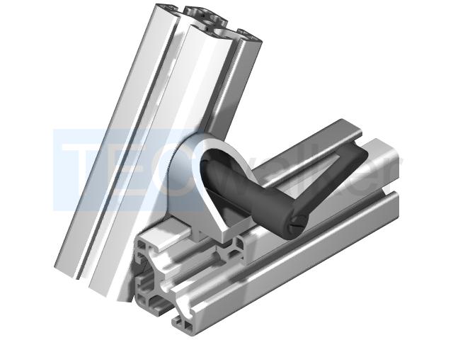 Klemmwinkel 6 mit KlemmhebelDatenArtikelnummer: Baureihe: Nut 6 Material: ZN beschichtet Maße: 30 x 25 x 30 Einheit: Stk. Gewicht: 0,103 Kg File Download Hinweis Der Klemmwinkel 6 mit Klemmhebel für Profile im Raster 30 erfüllt alle optischen Ansprüche durch seine silbern glänzende Lackbeschichtung und wird zur Verbindung zweier Profile der gleichen Baureihe verwendet, die an ihren Seitenflächen anliegen und unter einem bestimmten Winkel zueinander stehen sollen. Durch Lösen des Klemmhebels lässt sich der Winkel des zweiten Profilabschnittes jederzeit beliebig verstellen. Zur Befestigung ist ein Nutenstein im Lieferumfang enthalten Preise Sie sind (bitte wählen)