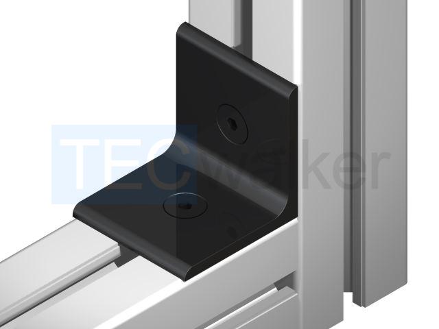 Winkel 10 60x60 schwarzDatenArtikelnummer: Baureihe: Nut 10 Material: ST beschichtet Maße: 60 x 60 x 5 Einheit: Stk. Gewicht: 0,2945 Kg File Download Hinweis Der Winkel 60 Nut 10 im Raster 60 besteht aus Stahl mit Pulverbeschichtung in RAL schwarz und dient zur bearbeitungslosen 90°-Verbindung zweier Profilabschnitte. Winkel aus Stahl eignen sich hervorragend als Auflage und zur stabilen Befestigung von beispielsweise Tischplatten aus Holz oder Metall. Unter der Artikelnummer S210WS60 ist der Winkel inclusive Schrauben und Hammermuttern als Satz erhältlich Preise Sie sind (bitte wählen)