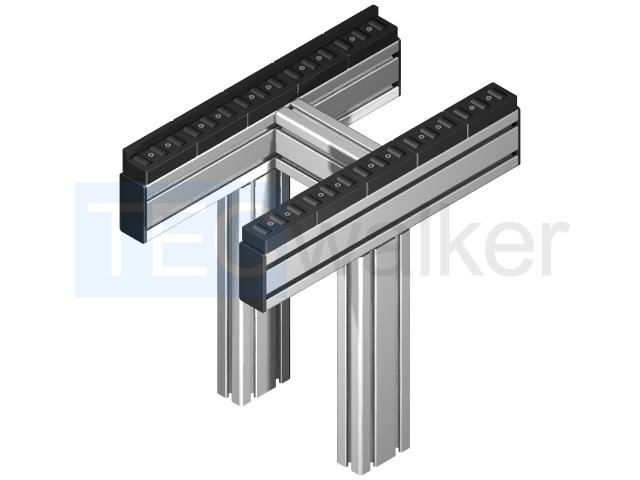 Rollenelement 8 80 mit BordkanteDatenArtikelnummer: Baureihe: Nut 8 Material: PA-GF schwarz Maße: 80 x 40 x 30 Einheit: Stk. Gewicht: 0,049 Kg File Download Hinweis Das Rollenelement 8 mit Bordkante als Führung von Behältern für Profile im Raster 40 wird zum Aufbau von Transportbahnen verwendet. Rollenelemente werden hintereinander auf der Profilnut mittels Schraube und Nutenstein montiert. Pro Rollenelement sind je 2 Schrauben Zylinderflachkopfschrauben M4x25 sowie idealerweise Hammermuttern mit Bremsmoment S208HM4BM zu verwenden, welche vorzugsweise vormontiert und sich dadurch die Montagezeit erheblich verringern lässt Preise Sie sind (bitte wählen)